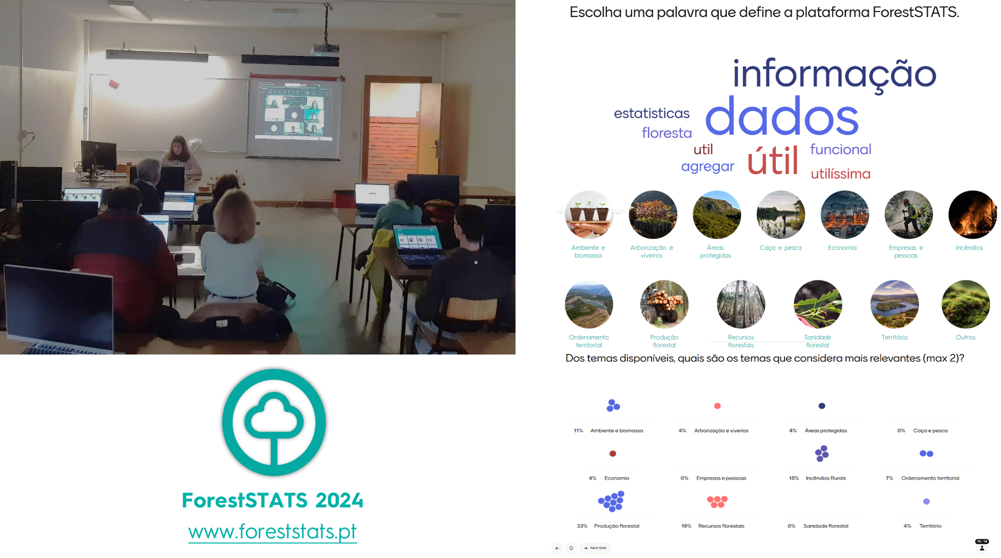 O projeto ForestSTATS realizou, no passado dia 11 de dezembro de 2025, uma ação de capacitação sobre a plataforma, em formato híbrido, que teve lugar no Instituto Superior de Agronomia (ISA) em Lisboa. Durante a sessão, foi realizada uma demonstração da navegação da plataforma e exploradas as variáveis atualmente disponíveis.